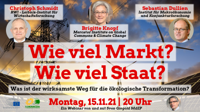 Aufzeichnung Liebe Freundinnen und Freunde, liebe Interessierte, die katastrophale Erderwärmung, der galoppierende Verlust der Artenvielfalt und eine globale Verschmutzungskrise verlangen effektives Handeln. Die wirksamsten Instrumente müssen so zum Einsatz kommen, dass sie ökologisch wirksam, wirtschaftlich effizient und wohlstandssichernd sowie sozial verträglich sind. In der Umweltökonomik wird seit langem zur richtigen Kombination der umweltpolitischen Instrumente geforscht. […]